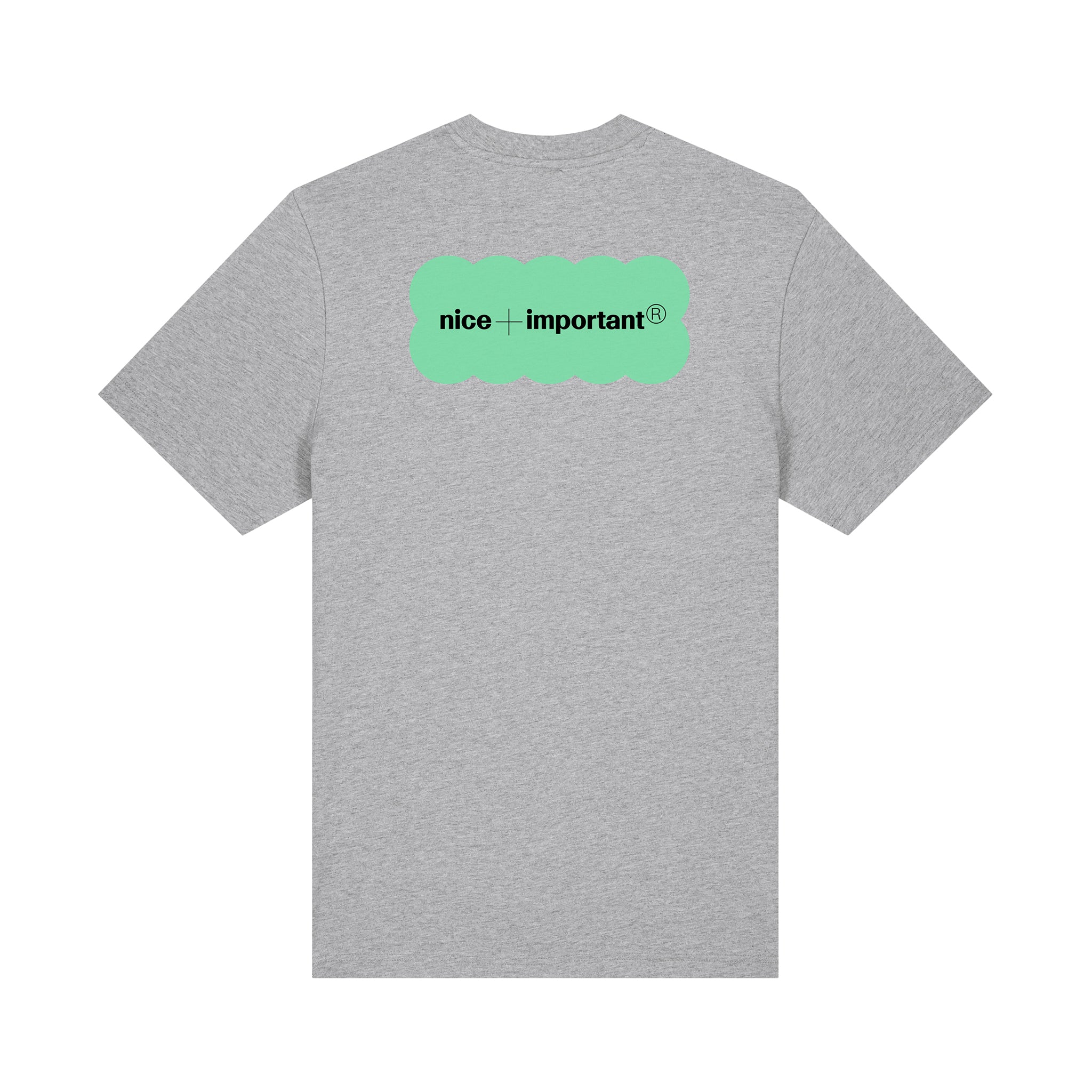 Nice+Important's relaxed fit heavyweight stone grey T-shirt with our hand-drawn cloud icon on the chest and cloud logo on the back.