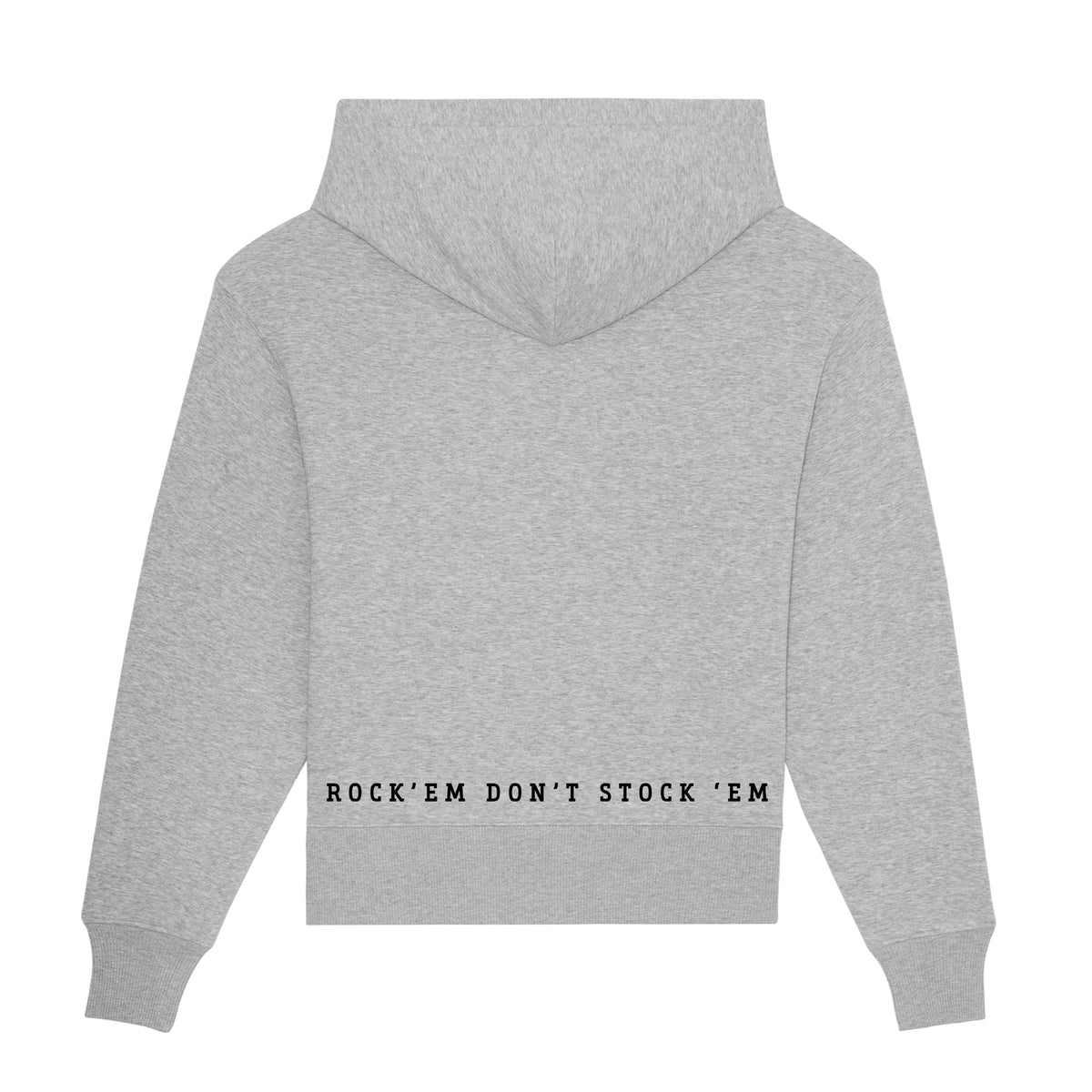 The RevWorks Boxlogo hoodie in a beautiful color combination of blue on grey with the slogan "Rock'em don't stock'em" in black on the lower back. This subtle boxlogo hoodie is a must-have for every petrolhead.