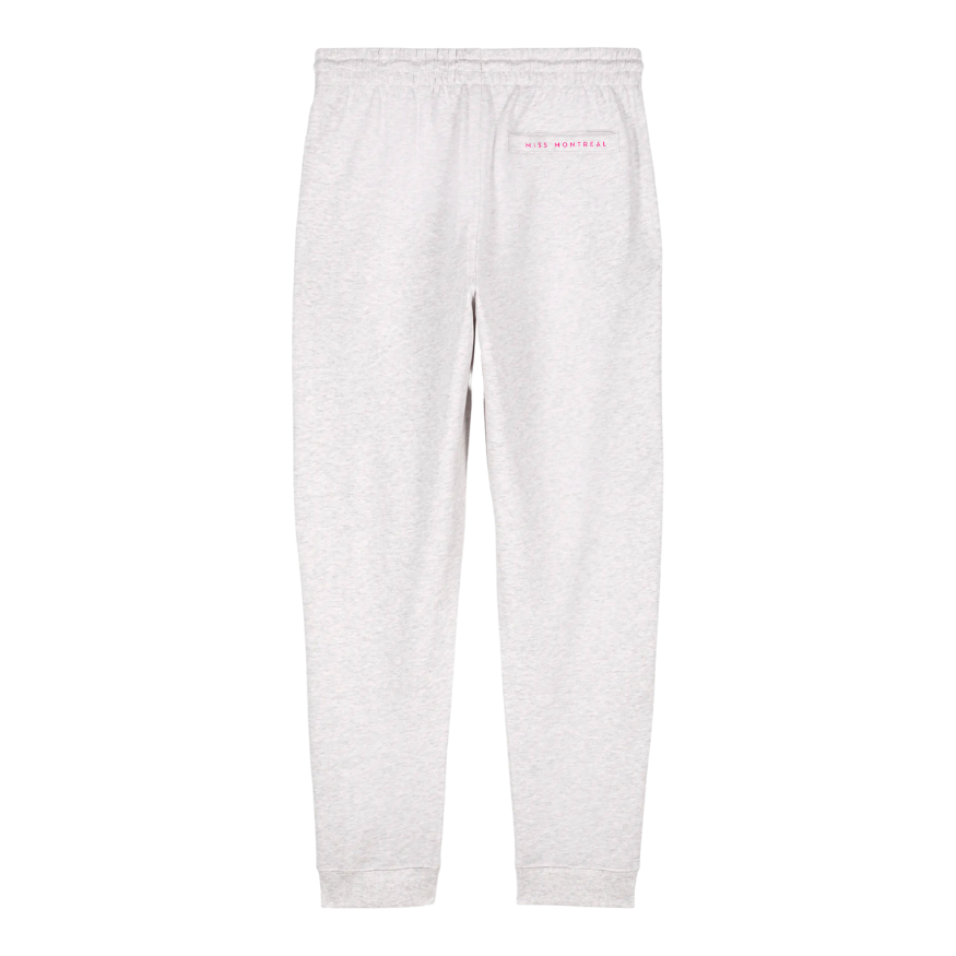 Deze grijze joggingbroek is voorzien van een roze logo print op de voorkant en op de achterkant. Het is perfect te combineren met de grijze hoodie en het grijze T-shirt uit deze lijn, maar ook leuk om los te dragen.