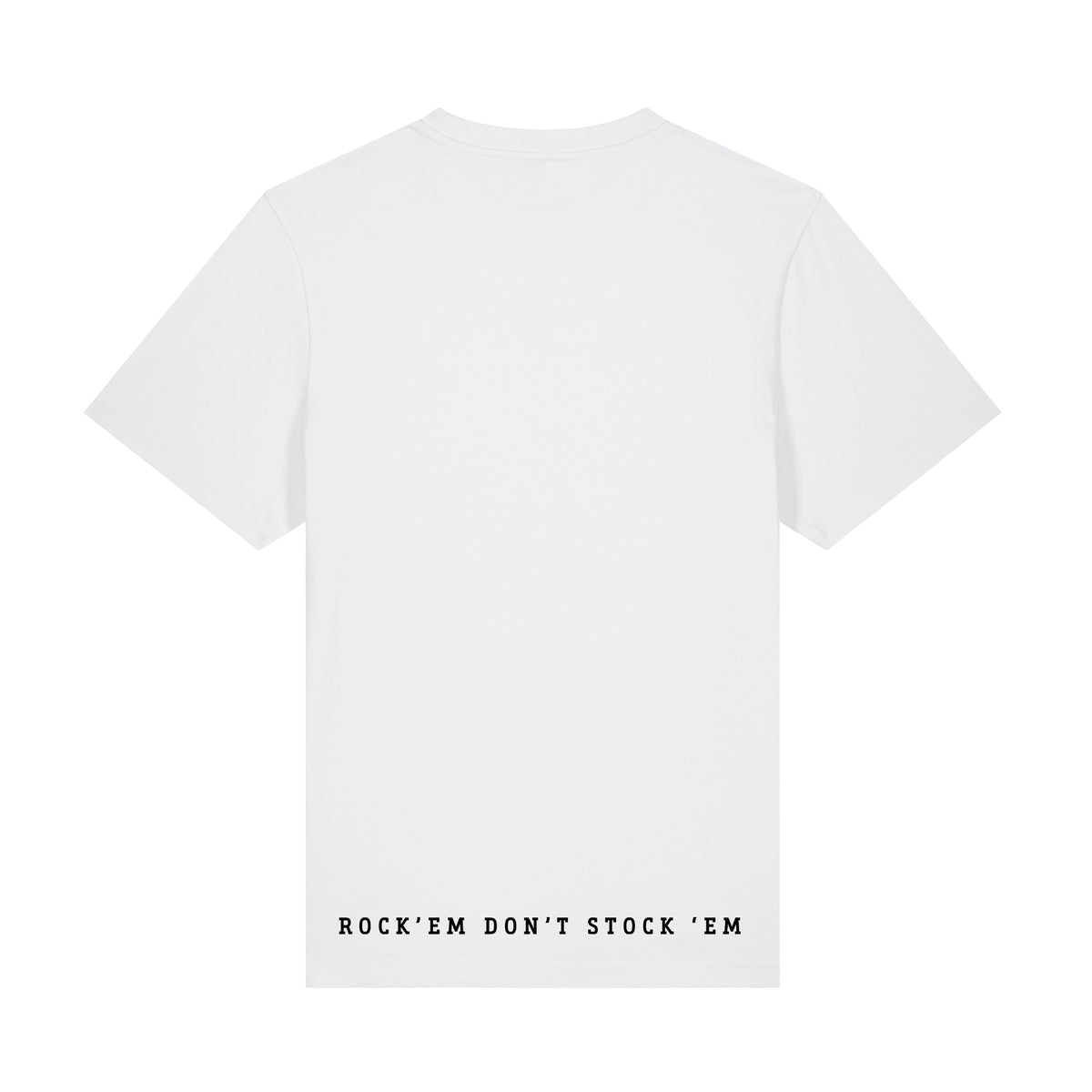 The RevWorks Basic Boxlogo T-shirt in a beautiful color combination of red with the slogan "Rock'em don't stock'em" in black on the lower back. This subtle logo T-shirt is a must-have for every petrolhead.