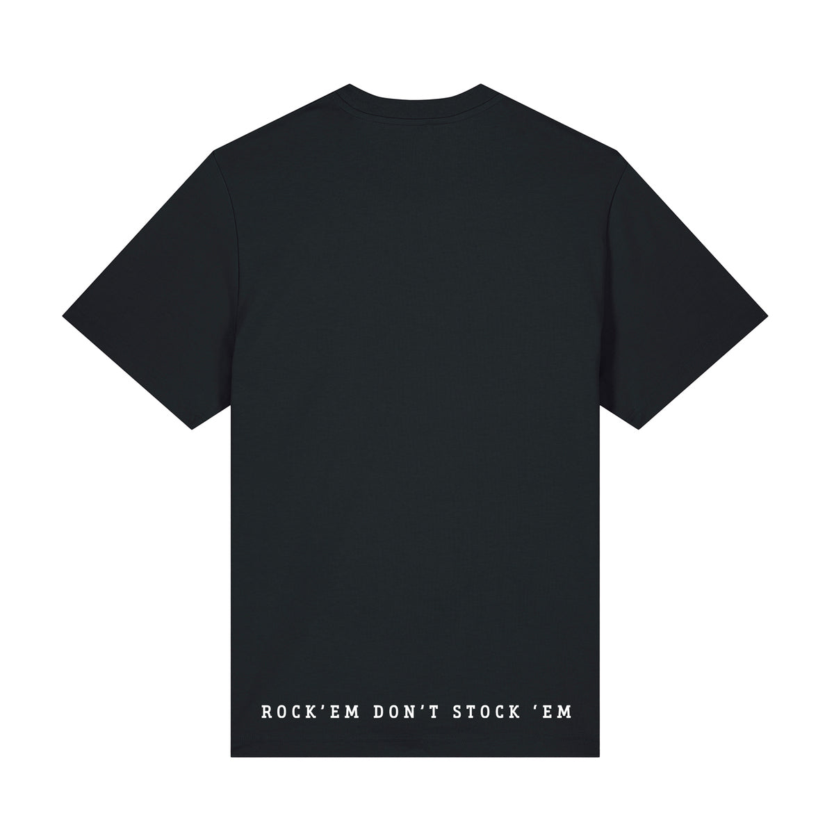 The RevWorks Basic Boxlogo T-shirt in a beautiful color combination of red with the slogan "Rock'em don't stock'em" in white on the lower back. This subtle logo T-shirt is a must-have for every petrolhead.